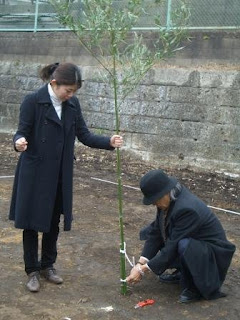 A:竹を立てています。(施主と設計者の共同作業です。これから一緒にやっていきますと 土地の神さまにご報告です。)